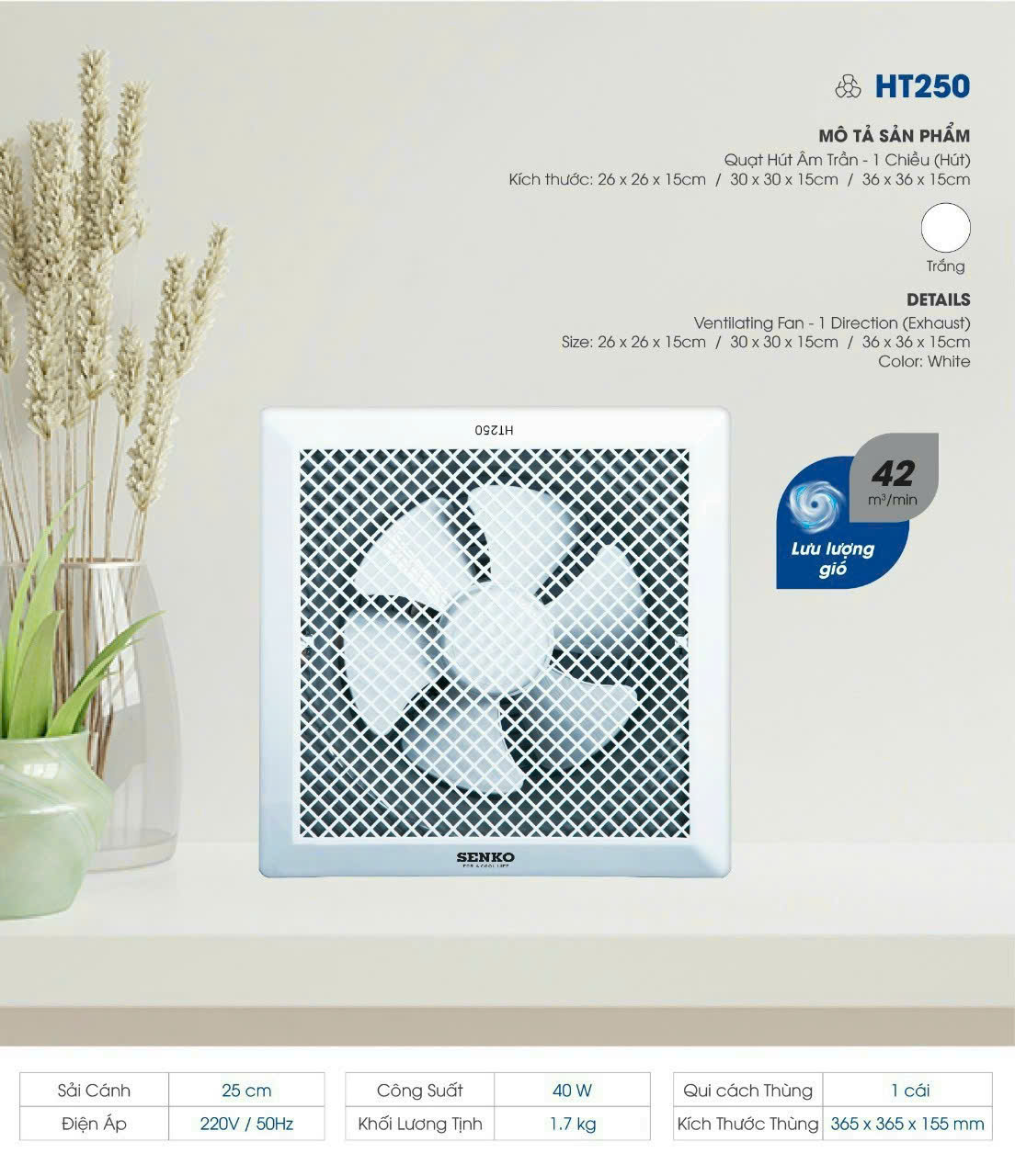 / Quạt Hút Âm Trần Senko HT250